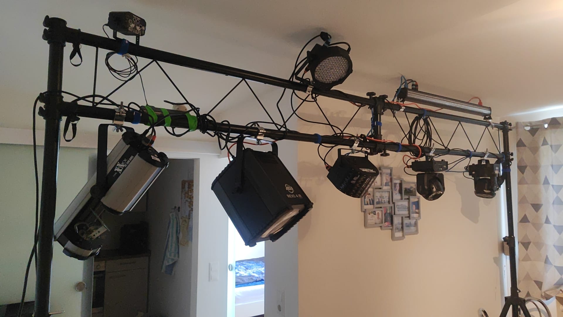 Im Jahr 2023 erweiterte ich mein DJ Equipment mit mehrere Koffern, größeren DJ Pult, eine Lichtertraverse mit neue Lichtern DMX gesteuert und einen Mischpult. Es kamen auch unzählige neue Kabeln und weitere Mikrofone sowie Mikrofonständer dazu. (Lautsprecherkabeln, DMX Lichtsteuerkabeln, Stromverlängerungskabeln etc.)